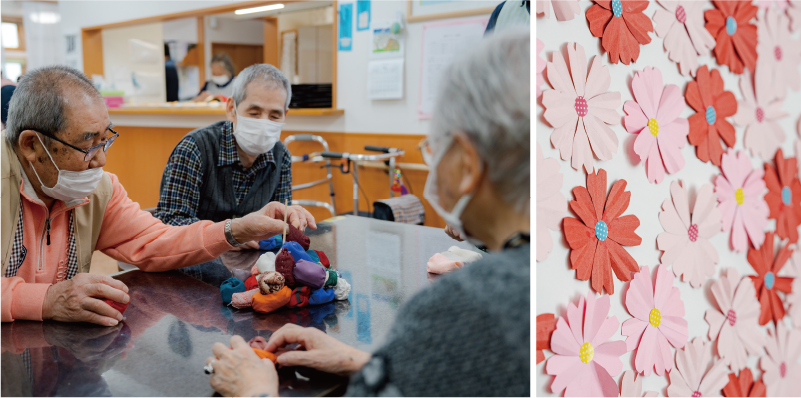 1年間を通して4月には観桜会、7月には夏まつりなどそれぞれの季節に合わせた行事や、外食、買い物などを行う外出レクリエーション、屋内では映写会やお菓子作りレクリエーションなど利用者様に日々の生活を楽しんで過ごしてもらえるよう、企画、準備、実施しております。